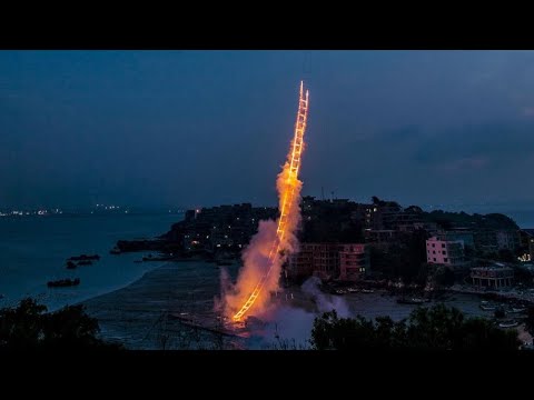 Chinese Artist Creates Stairway To Heaven Fireworks Cctv English
