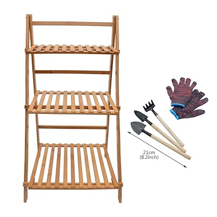 Plant Stand Bamboo 3 Tier Foldable Shelves