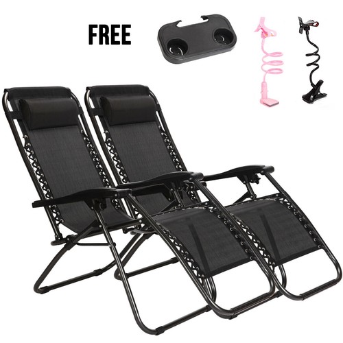 2 Pcs Folding Lounge Chair With Zero Gravity