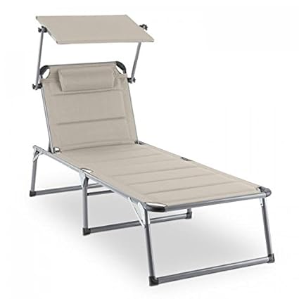 Blumfeldt Amalfi Outdoor Portable Folding Lounge Chair 5 Reclining Positions Sunshade Adjustable Pillow Resistant Polyester Cover Beige