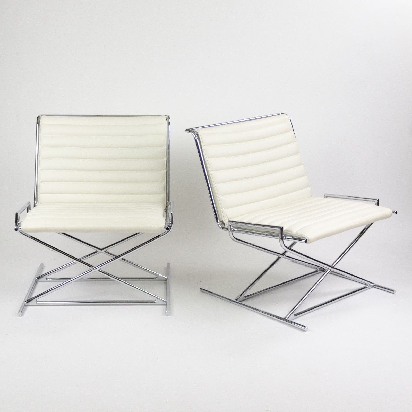Details About Pair Ward Bennett Sled Lounge Chairs By Geiger For Herman Miller White Leather