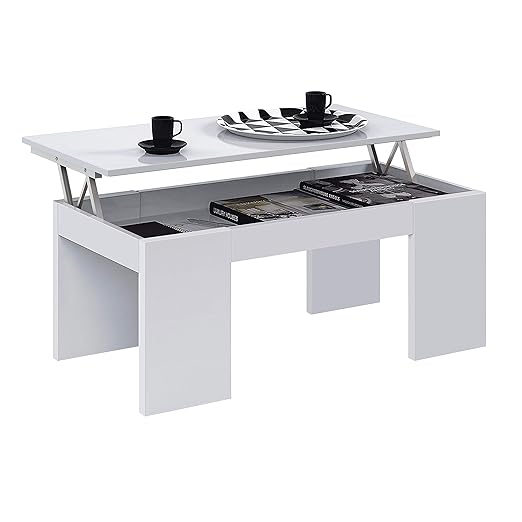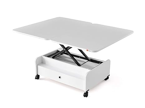 Jeffordoutlet Dining Party Table Lift Up Modern Shape Height Adjustable Coffee Table White Living Room Outdoor Furniture