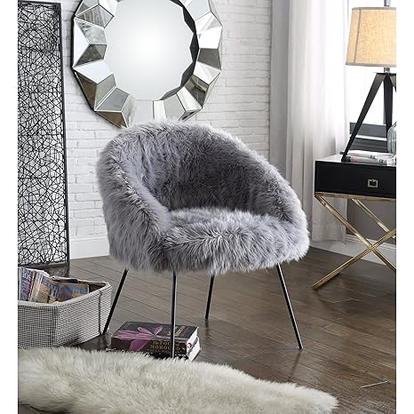 Ana Grey Fur Accent Chair Metal Legs Upholstered Living Room Entryway Bedroom Inspired Home