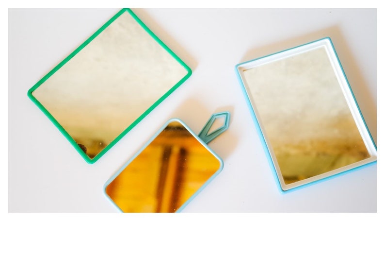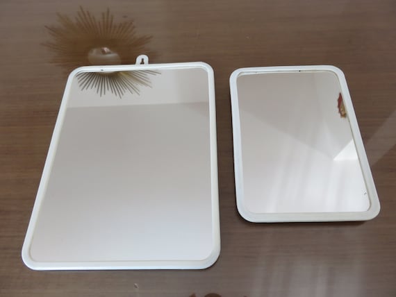 2 Old Barber Mirrors White Plastic Tower Mid Century 1960 1970 60 S 70 S Deco Vintage Old Barber Mirror