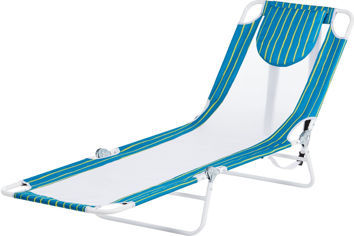 Trail Portable Beach Mat Blue Stripe Folding Sun Lounger Adjustable Deck Chair
