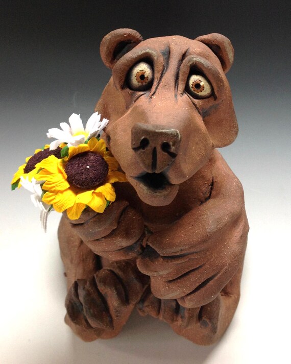 Whimsical Ceramic Sculpture Pottery Bear Ornament In Stoneware Henson