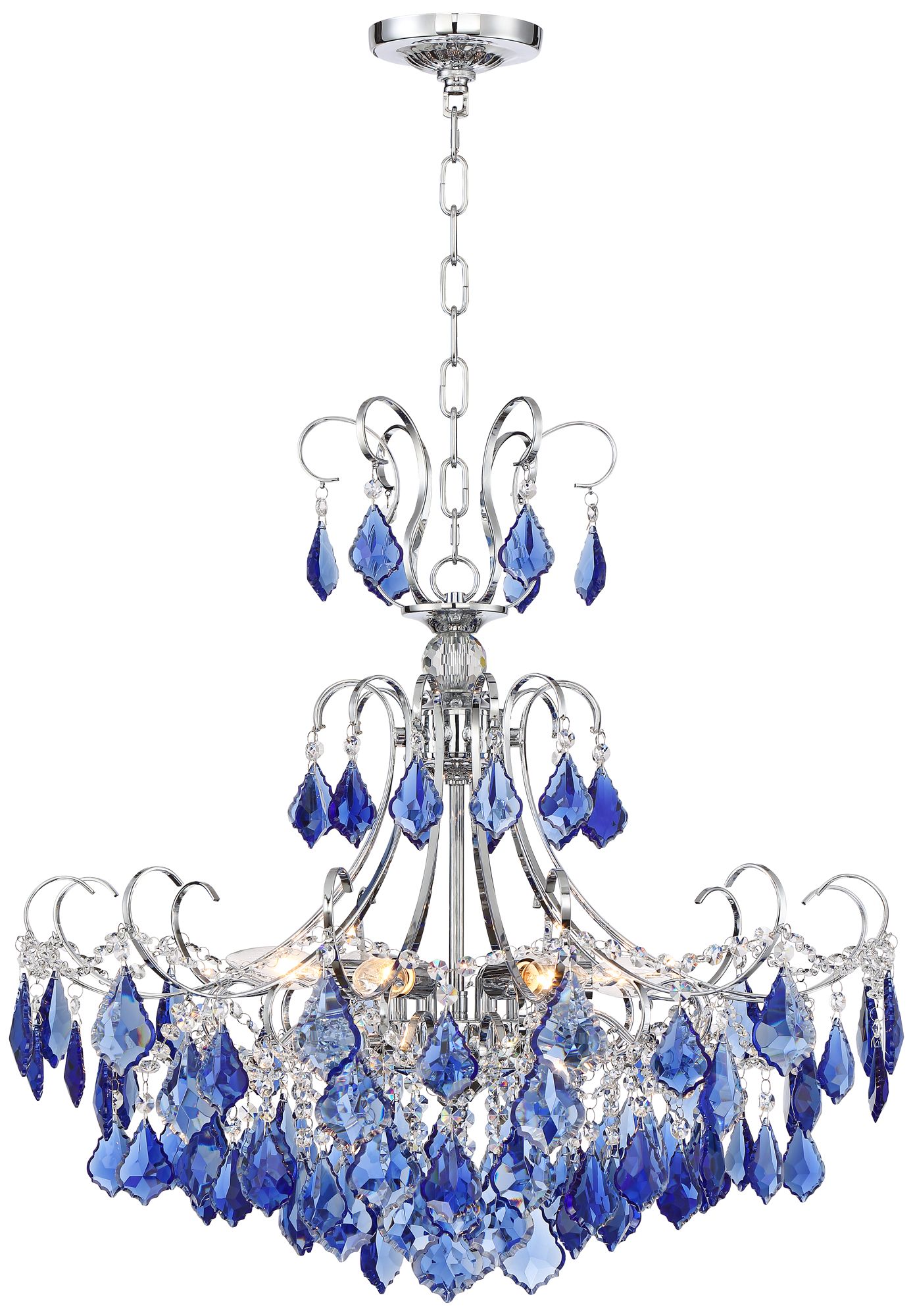 Alpine Chrome Chandelier 26 Wide Modern Blue Crystal Fixture For Dining Room House Foyer Kitchen Island Entryway Bedroom Living Room Vienna Full