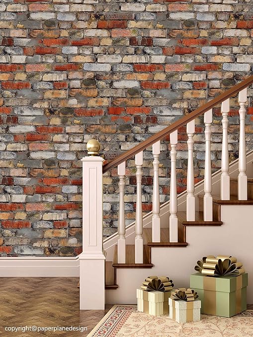 Paper Plane Design Bricks Grey Brown Mix Theme Wall Sticker Pvc Vinyl 41 Cm X 615 Cm Multicolour