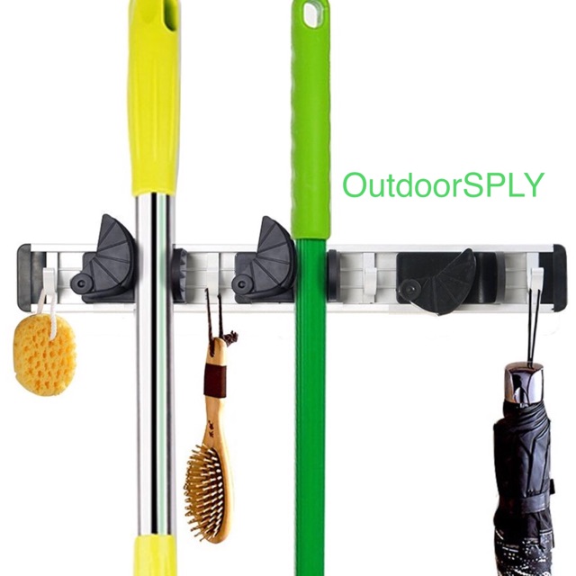 Best sellers gift ideas new releases. Home it mop and broom holder 5 position with 6 hooks garage storage holds up to 11 tools storage solutions for broom holders garage storage systems broom organizer for garage shelving ideas. 4 position 5 hooks mop and broom holder rack wall mounted mop broom rack with accessories for home kitchen bathroom tool.