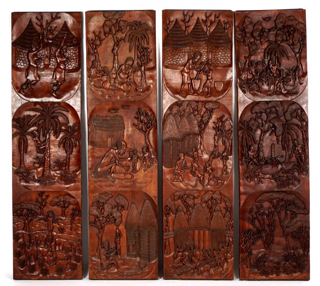 Four Josef Tonfo African Carved Wood Panels