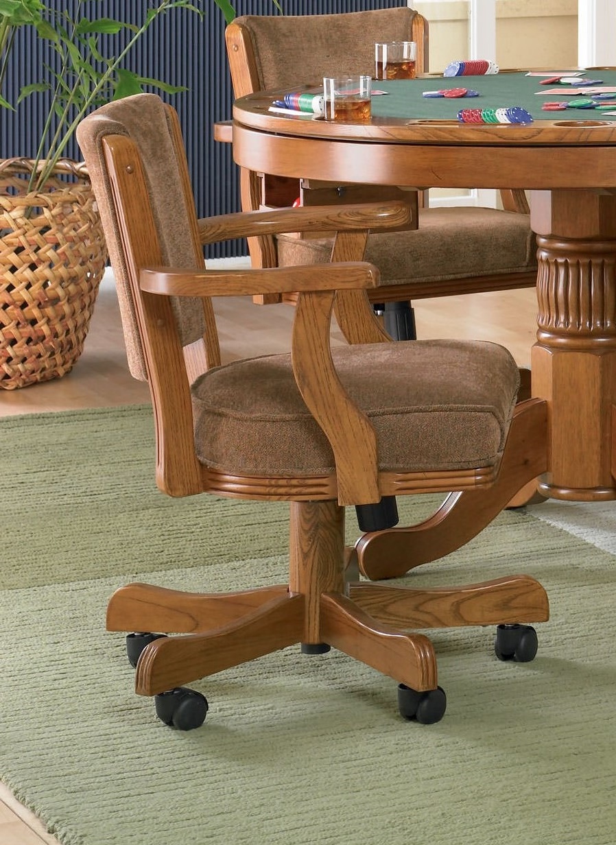 Casual Swivel Tilt Caster Dining Chair With Upholstered Arms