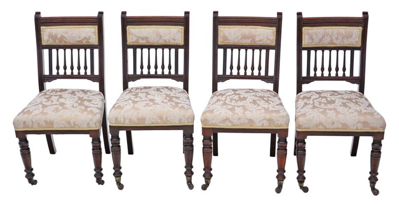 Set 4 Four Antique Rosewood Dining Chairs With Castors