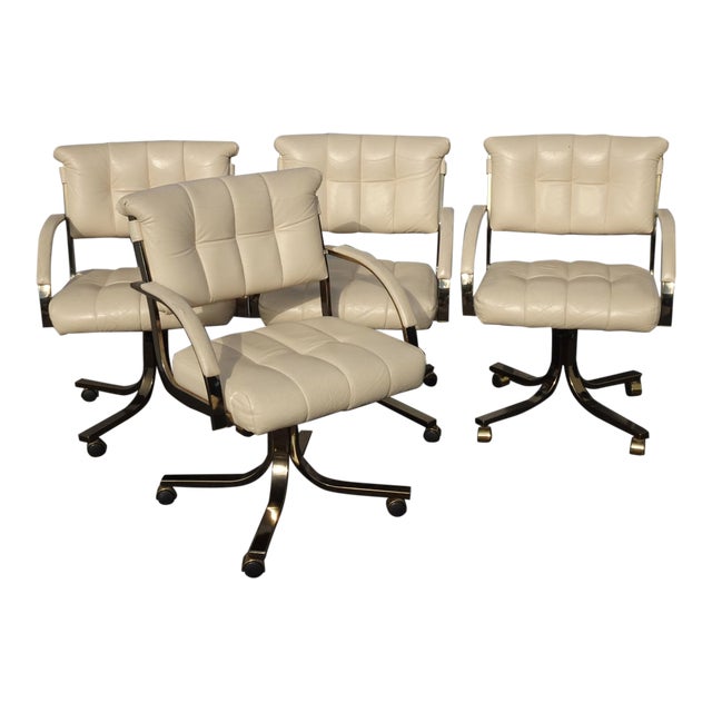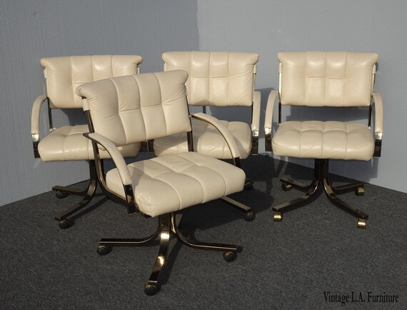 Four Vintage Mid Century Modern Leather Dining Chairs Castors By Cal State