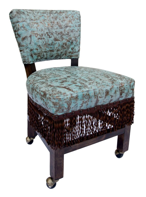 Turquoise Barkley Fringe Castor Chair Light Blue Leather Chair With Fringe Rustic Western Dining Chair