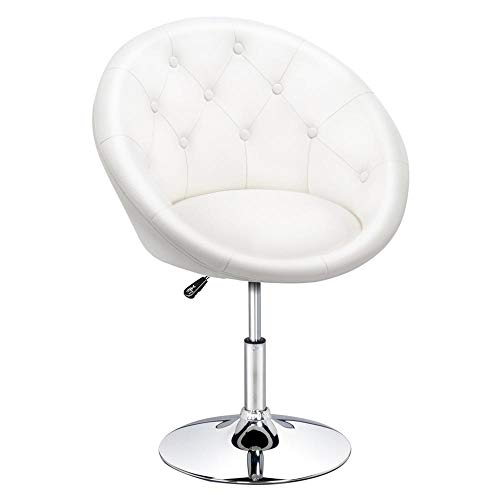 Yaheetech Adjustable Modern Round Tufted Back Chair Tilt Swivel Chair Vanity Chair Barstool Lounge Pub Bar White