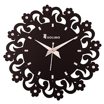 Amazon Brand Solimo 11 25 Inch Wooden Wall Clock Designer Sun Silent Movement Black Frame