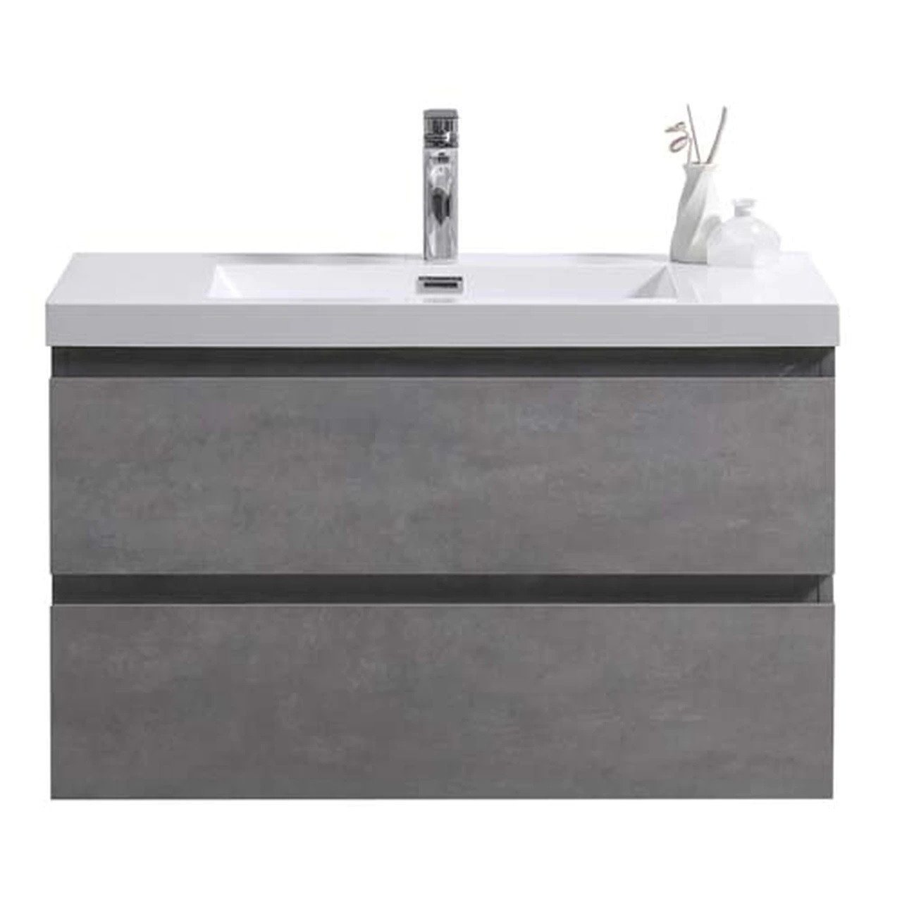 Moreno Mob 36 Concrete Grey Wall Mounted Modern Bathroom Vanity With Reeinforced Acrylic Sink