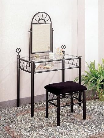 The Furniture Source Sunburst Design Black Vanity Set Table Mirror And Bench