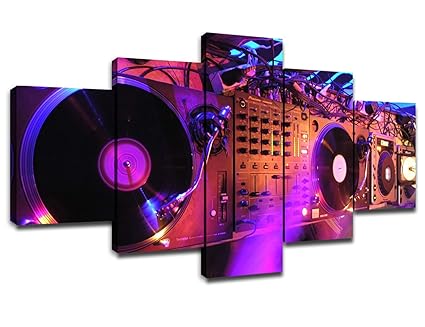 Chicicio Wall Art For Living Room 5 Piece Canvas Prints Painting Colorful Acoustic Mixer Equipment Entertainment Dj Station Modern Artwork Home Decor