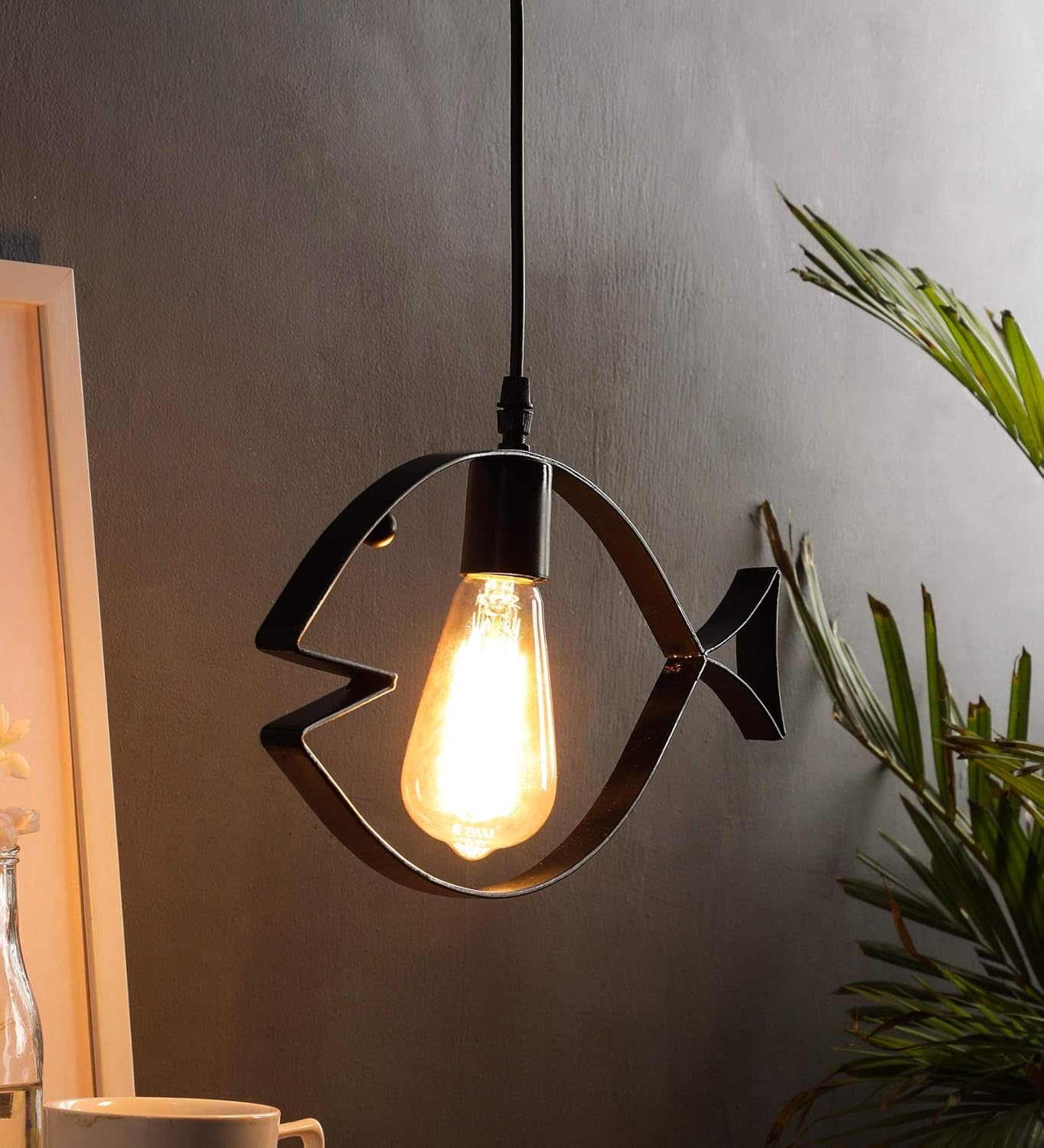 Eisa Metal Suspension Lights Creative Fish Pendant Light Hanging Lamps Drop Light Black