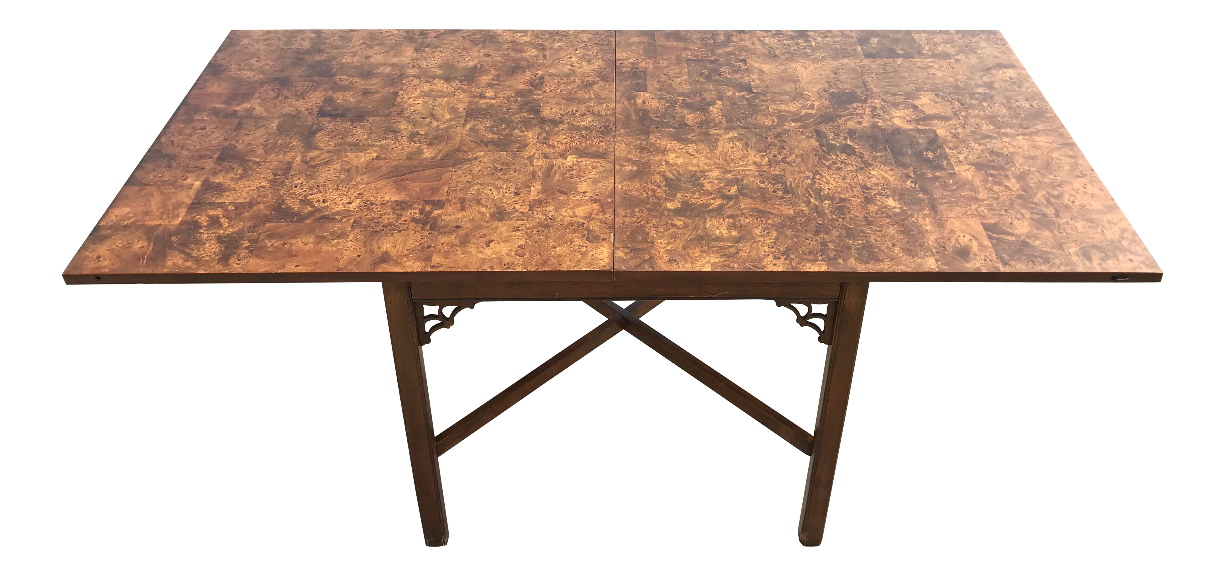 1960s Chippendale Patchwork Burl Wood Flip Top Game Dining Table