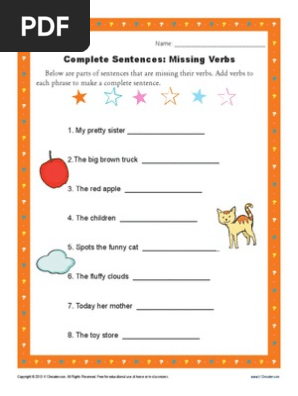 Complete Sentences Missing Verbs Sentence Structure