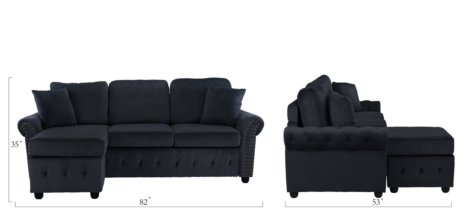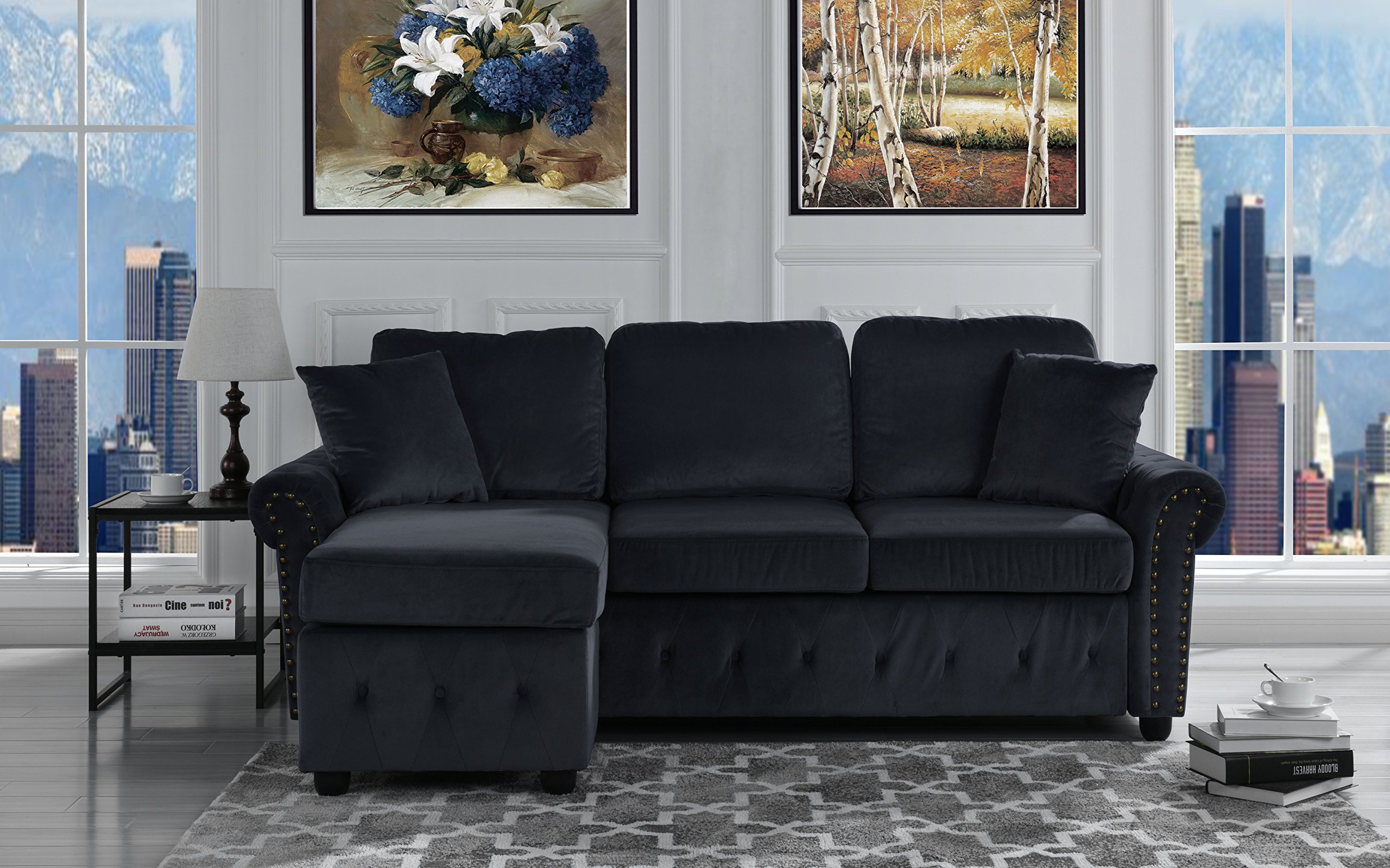 Furniture Mania Classic Small Space Tufted Brush Microfiber Sectional Sofa With Chaise L Shape Couch Black