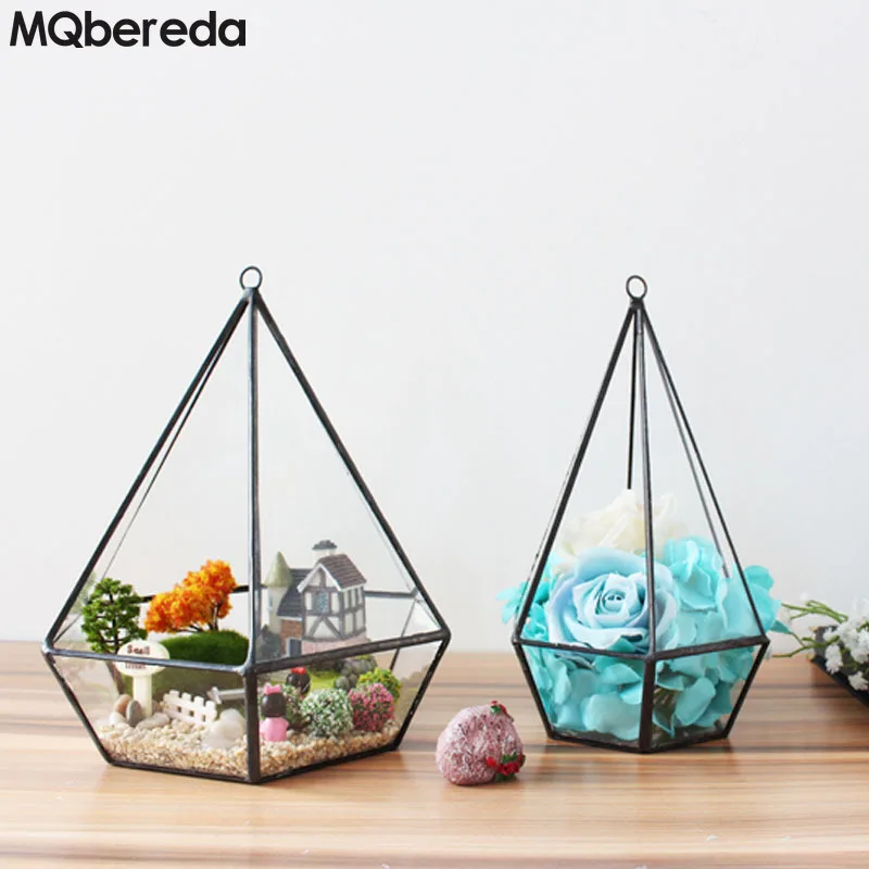 Us 39 15 9 Off Handmade Glass Terrarium Modern Planter For Indoor Gardening Geometric Crystal Shape Orchid Planter Table Greenhouse In Flower