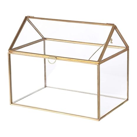 Ncyp Glass Geometric Terrarium Tin Sealed Brass Black House Shape Container With Grid And Swing Lid For Moss Succulents Cacti