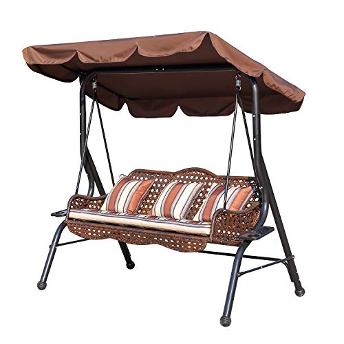 Sogeshome 3 Seat Porch Patio Swings Chairs With Canopy Outdoor Swing Lounge Chair Hammock Brown Rlqq2025 Br Sh