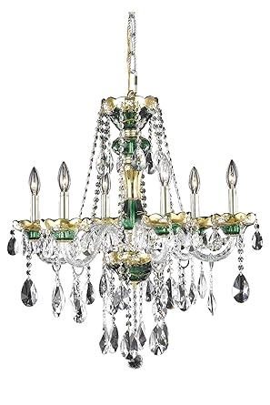 Alexandria 6 Light Chandelier Finish Green Crystal Trim