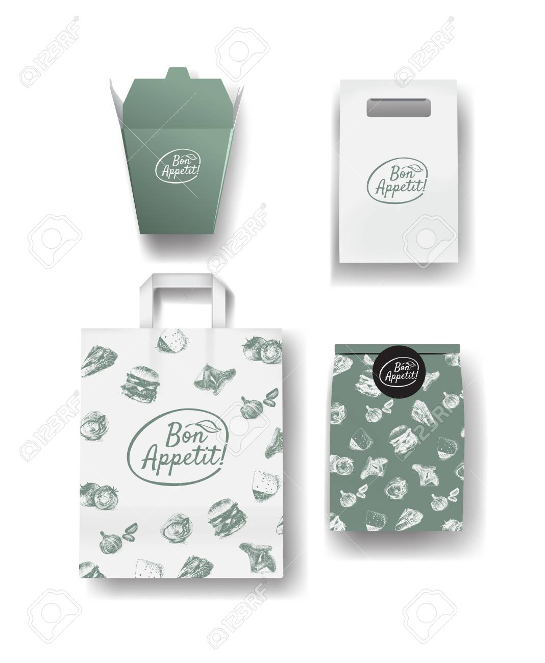 Restaurant Cafe Set Package And Paper Bags Layout Set Of Corporate Identity