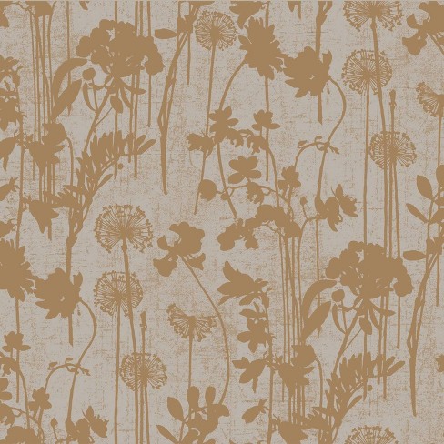 Distressed Floral Self Adhesive Removable Wallpaper Gray Metallic Copper Tempaper