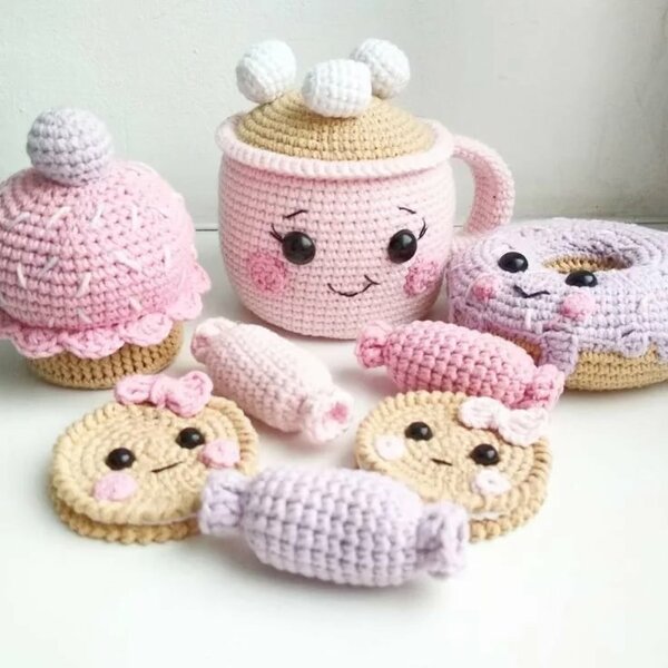 Details About Play Fun Fake Food Crochet Knitting Pattern Play Kitchen Amigurumi Tea Party