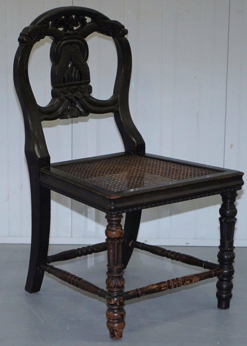 19th Century Chinese Ebonized Carved Wood Dragon Dining Chairs Set Of 4