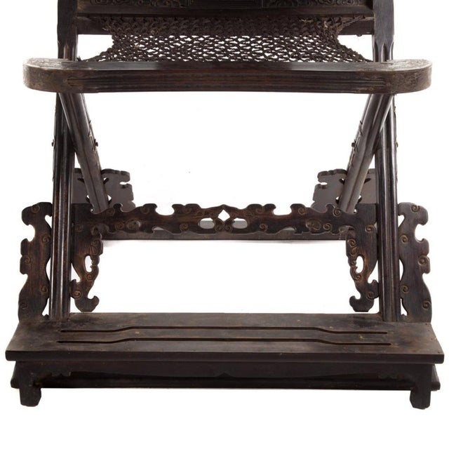 Large Antique Chinese Zitan Folding Dragon Chairs A Pair