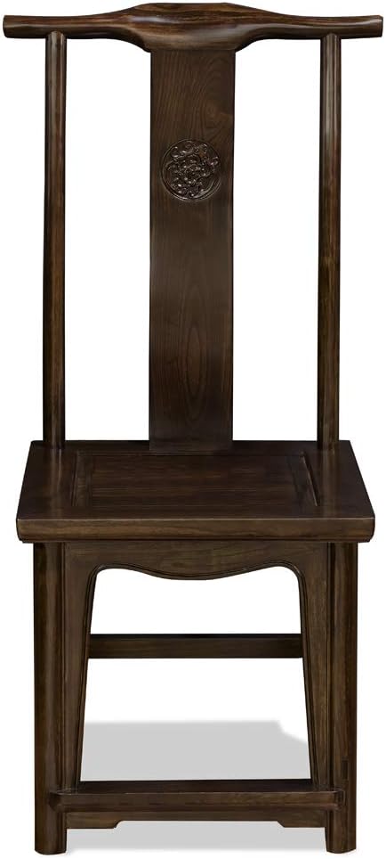 China Furniture Online Elmwood Chair Hand Crafted Ming Style Imperial Official Chair Motif With Dragons Carving Back In Dark Brown Finish