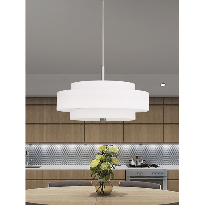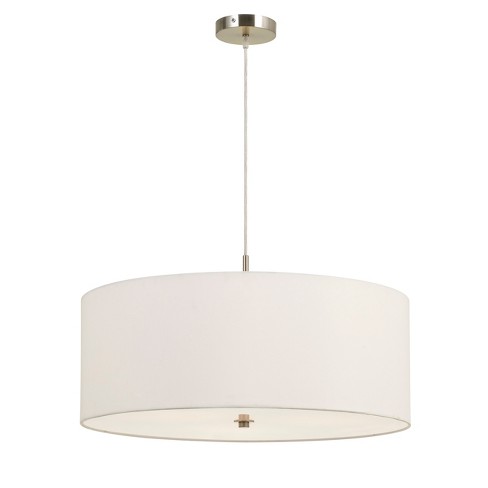 Modern Drum Pendant Light With White Shade In Satin Nickel Finish