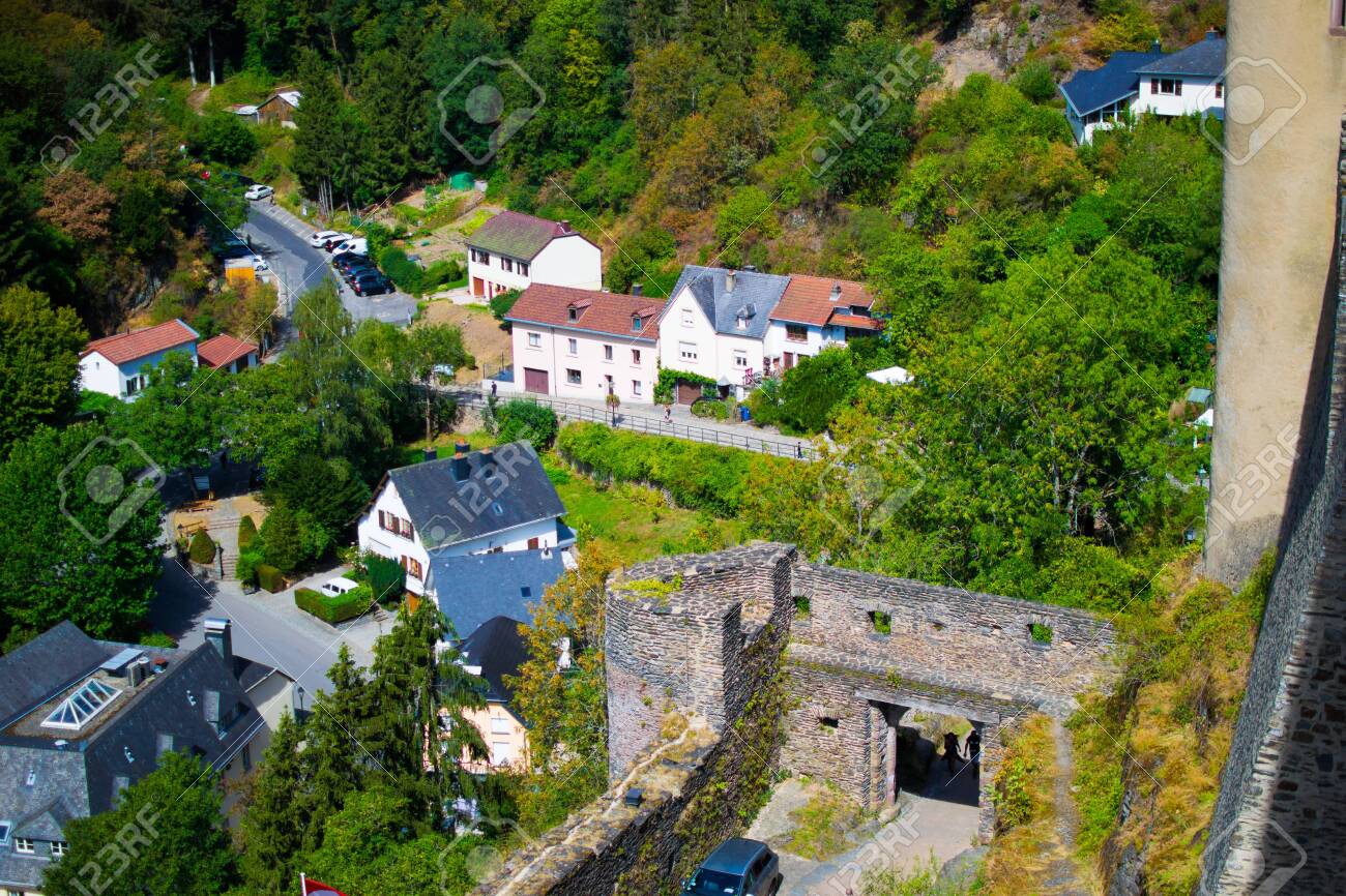 View Of The Wall Of Vianden Castle And Houses In The Forest And